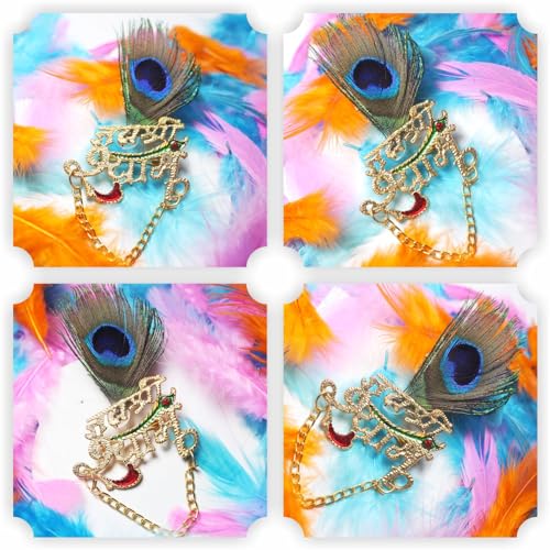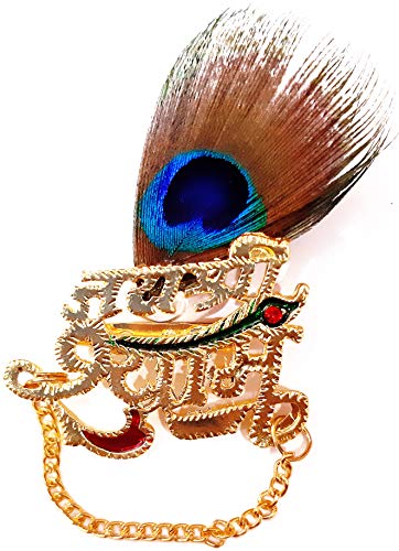 Unisex Multicolour Non-Precious Metal Jai Shri Shyam Mor Pankh Feather Brooch in Velvet Box