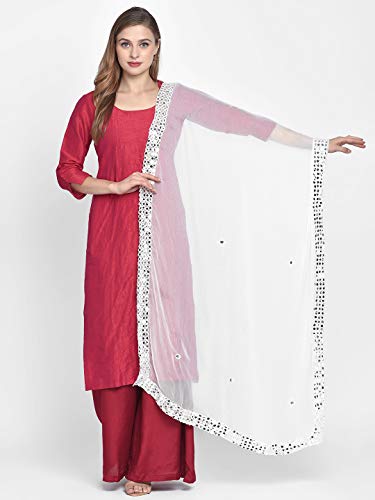 DUPATTA BAZAAR Woman's Chiffon Dupatta with Mirror Work.