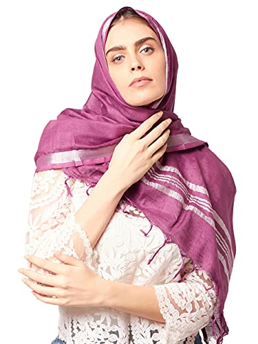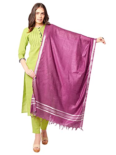 DUPATTA BAZAAR Women's Purple Plain Linen Dupatta