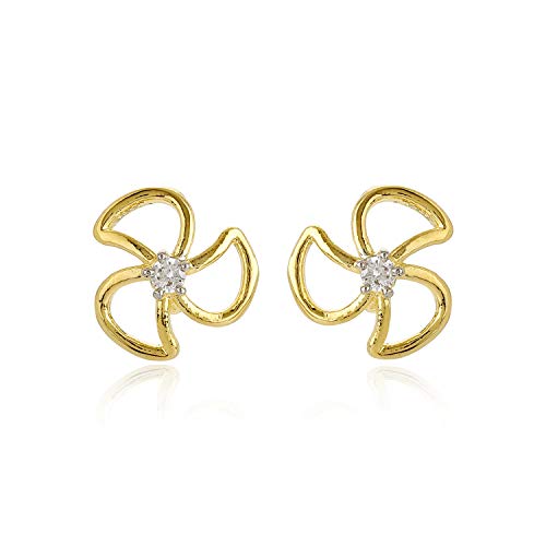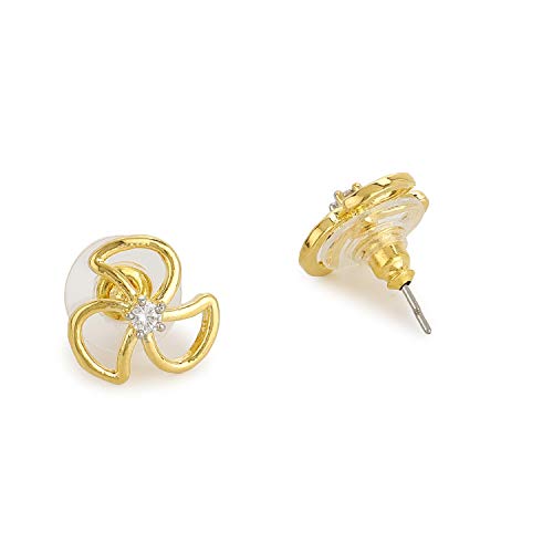24 Kt Gold Plated American Diamond 3 Petal Clover Stud Earrings For Women Suitable for All Occasions Gift for Wedding Engagement Anniversary and Birthday