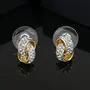 24Kt Gold And Silver Tone Plated White Austrian Crystal Stond Round Stud Earrings