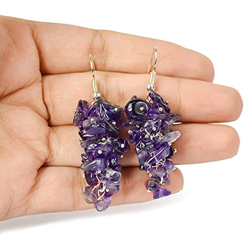 Amethyst Earrings Natural Chip Beads Earrings for Women, Girls (Purple)