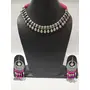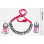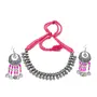 athizay® Pink Fashion Jewelry Set Antique Oxidized Silver Necklace Set With large statement Earrings For Rakshabandhan Garba Navratri Diwali teej ethnic and party wear
