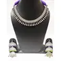 Purple necklace. Stylish Oxidized Silver necklace set for women. Antique finish Silver finish jewellery set with dangle earrings which are in dangler fashion.Party wear necklace jewelleryMatinee Necklace set with shape pendant with silver beaded and stud earring set women fashion jewellery for daily and office wear