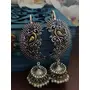 Binni s Wardrobe Womens Dual-Toned Textured Long Jhumka With Hanging Pearl Handcrafted Earrings (Silver)