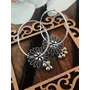 Binnis wardrobe Silver toned Red stone studded drop beautiful Textured leaf Earrings (Silver Flower)