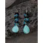 A feminine and uber stylish piece that spells sophistication and class. The design of these earrings is intricate , embellished with black spinel and teal blue jade beads with pear drop shaped Amazonite beads to add to the glamour quotient.Perfect for a Diva!!! Good to wear to any formal or semi formal gathering , western or traditional. Dimensions:Length of Earrings - 8 cmsMaterial :Base Metal : 92.5 SilverStone Type : Amazonite Pearl Drop beads, Black Spinel Beads and Blue Quartz beadsWeight : 19.69 gms.Specifications : Earring Type: ContemporaryEarring Back Type: HookStone Cut: FacettedStone Shape: Pear, Round and OvalStyle: ContemporaryBirthstone: Amazonite for March , Blue Quartz for Apr and Pearls for June.Stone Color: Aqua Green, Blue and WhiteCare Instructions:Wipe your jewellery with a soft cloth after every useAlways store your jewellery in a flat box to avoid accidental scratchesKeep sprays and perfumes away from your jewelleryDo not soak your jewellery in water