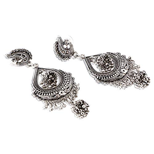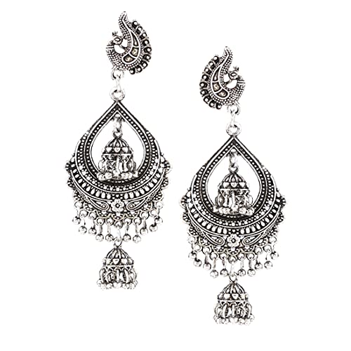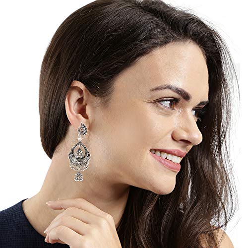Designer Dangler Peacock Crafted Indain Bollywood Silver Oxidized Traditional Party Ware Ethnic Long Jhumka/Jhumki Earrings Indian Traditional Jewelry for Women From Yellow Chimes