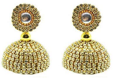 Beautiful Designer Rhinestone Jhumki for all age group. Appropriate size for those looking for an all occasion jewelry. This Designer Rhinestone jhumki is suitable for all ocassions. A traditional party wear earring that matches to our outfit. This elegant jhumki is light in weight which makes it suitable to be carried. Whether you wear ethnic outfit or western dress it suits you on each and every occasion. Rhinestone gives an exquisite and elegant fancy look to the earring. Our jewellery designers create high quality well checked luxurious fashionable unique designs which has elegance and style to it.
