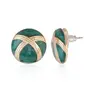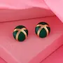 Emerald Green Colour Enamel 24KT Gold Plated Non Precious Metal Round Stud Earrings for Women Suitable for All Occasions