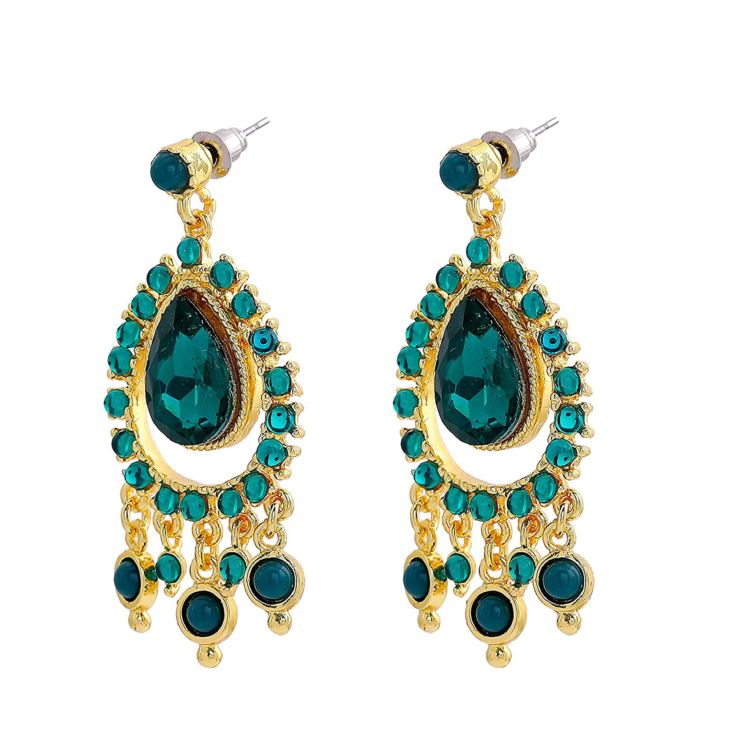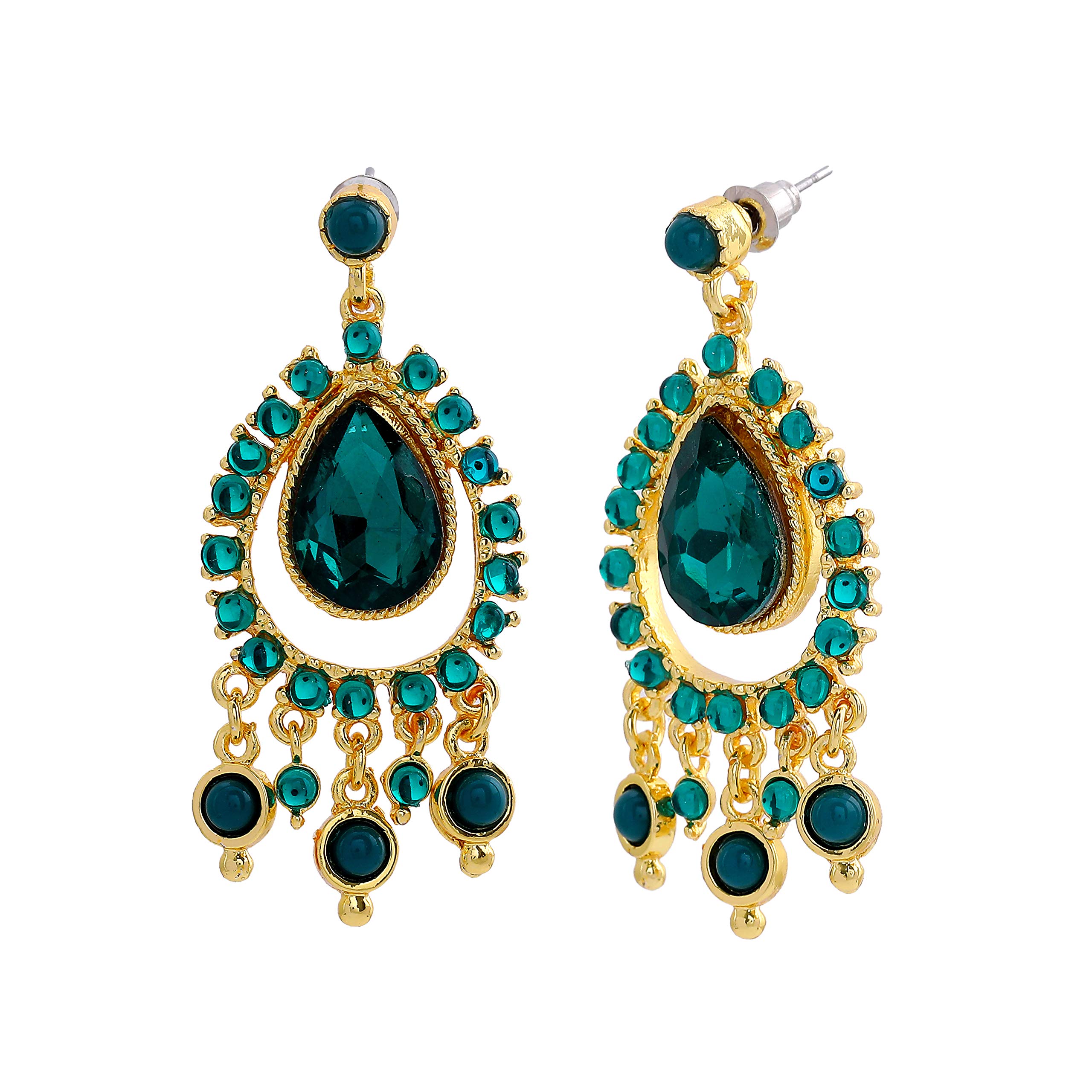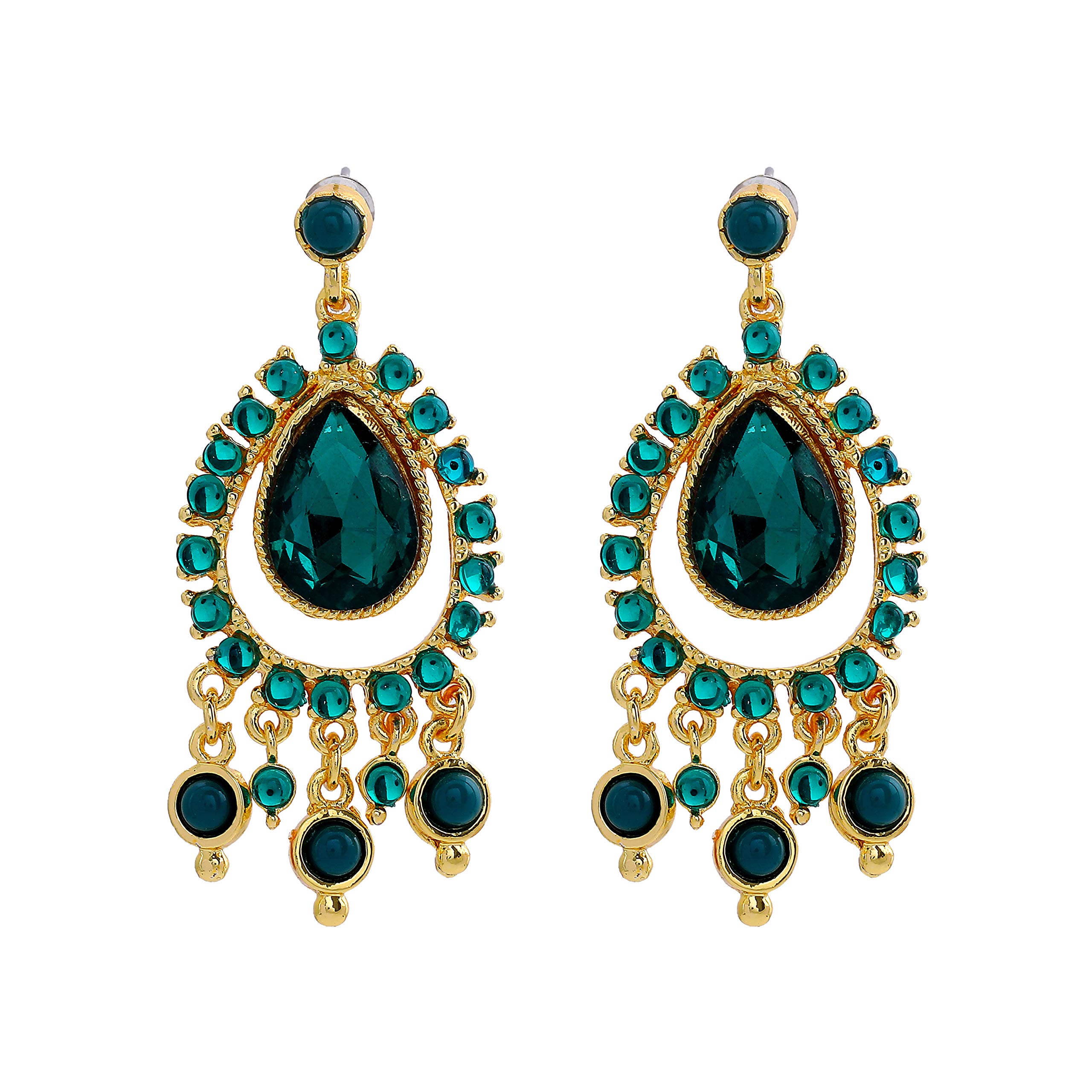 Estele Gold Tone Green pear chandelier Dangle Earrings For womens