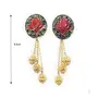 Hand ted meenakari earrings in antique golden colour.The lotus and leaves have hand ted meenakari work and have dangling handmade golden metal beads. It has a very elegant loook and is not very heavy to wear.Suitable for party dialywear festive wear.Earring back type: push studEarring length: approx 8.5cm