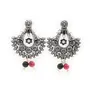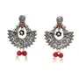 G&F Silver Stone Studded Floral Chandbali Dangle & Drop Earrings for Women