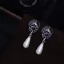 Gehena By Estele Non Precious Metal Rhodium tone Blue Donut Elongated Pearl Drop Earrings for Girls Suitable for All Occasions