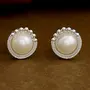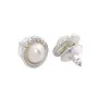 Gehena By Estele - Rhodium Tone Twisted Edge Pearl Stud Earrings For Women Girls Suitable for All Occasions Special for Wedding Engagement Anniversary and Birthday