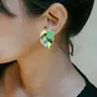 Description OCCASIONS-- It can be worn as earrings to to your happy days. Such as weddings graduation ceremonies friends gatherings fancy dress balls bohemian weddings formal affairs beach weddings costumes honeymoons dance parties beauty pageants garden parties homecoming or baby showers. Features- Color: Purple+ green.- Material: Metal.- Size: About 3.50X2.70X1.60cm/ 1.38X1.06X0.63in. Package Including 2 Pairs x Earrings