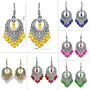 Girl's Stylish German Afghani Style Ethnic Fusion Multicolor Beads Chandbali Earrings Combo Of 7 Pairs Oxidized Silver
