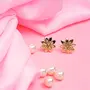 Gold Plated Flower Shaped Stud Earrings With Crystals for Girls and Women