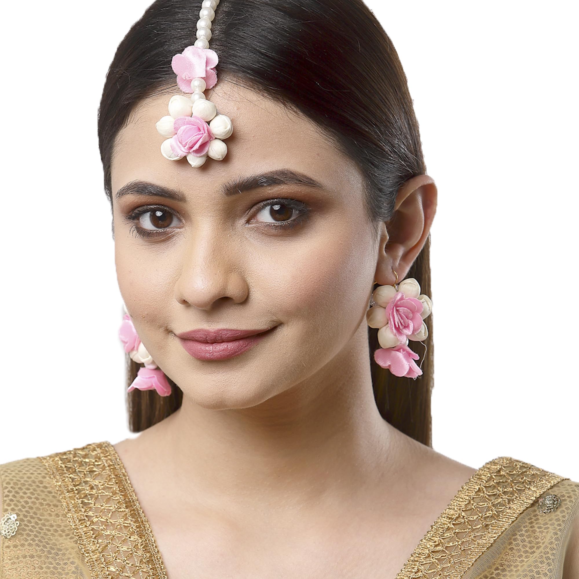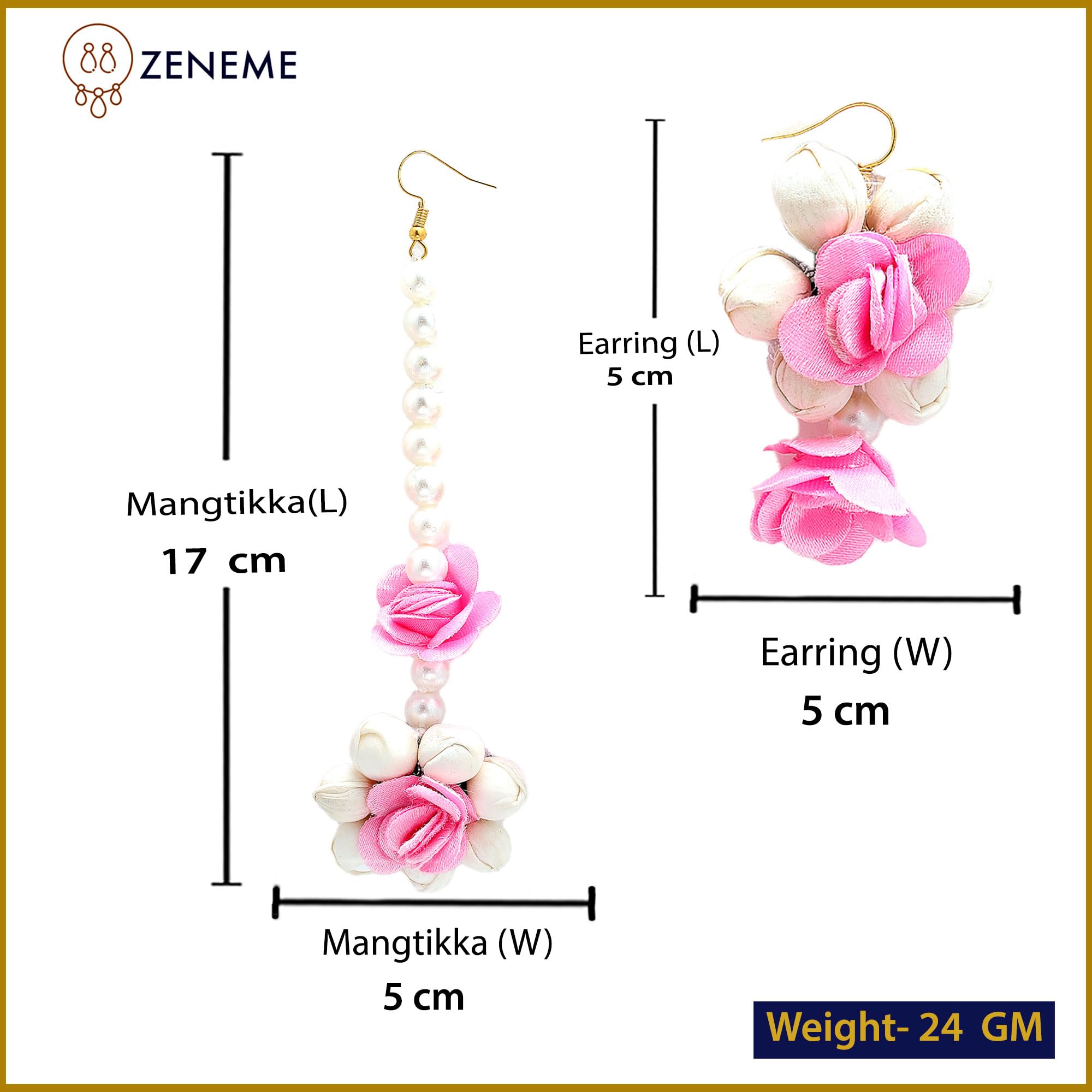 Gold-Plated Pearl & Gota Patti Flower Haldi Mehandi MaangTikka with Earrings