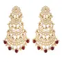 I Jewels 18k Gold Plated 3 Layered Beaded Chandbali Earrings with Kundan and Pearl Work for Women (E2859-1)