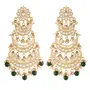 I Jewels 18k Gold Plated 3 Layered Beaded Chandbali Earrings with Kundan and Pearl Work for Women (E2859-1)