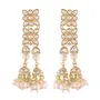 This earring set is crafted in 18K gold plated finish - these earrings are really special. The earrings feature Kundan-studded. Be stylish and smart with these Earrings. Wear it with a suit or a saree and lehenga for an ethnic yet classy look. This earring set is a great option and a perfect pick for your wedding functions. Be assured to find a variety of contemporary and traditional designs in the mesmerising collection that we offer Adding a unique touch to this kundan work earrings with an unconventional shape these earrings are statement worthy.
