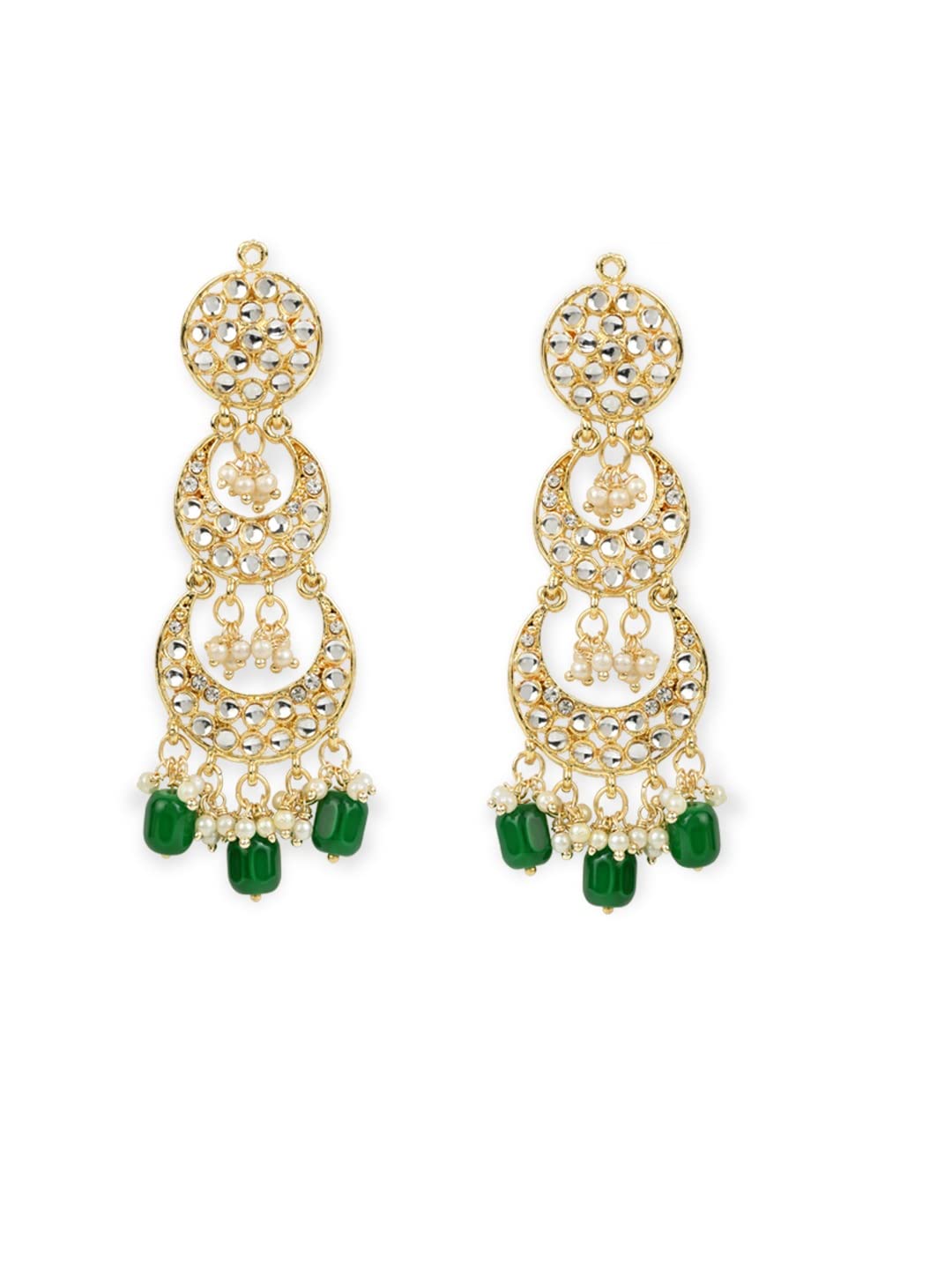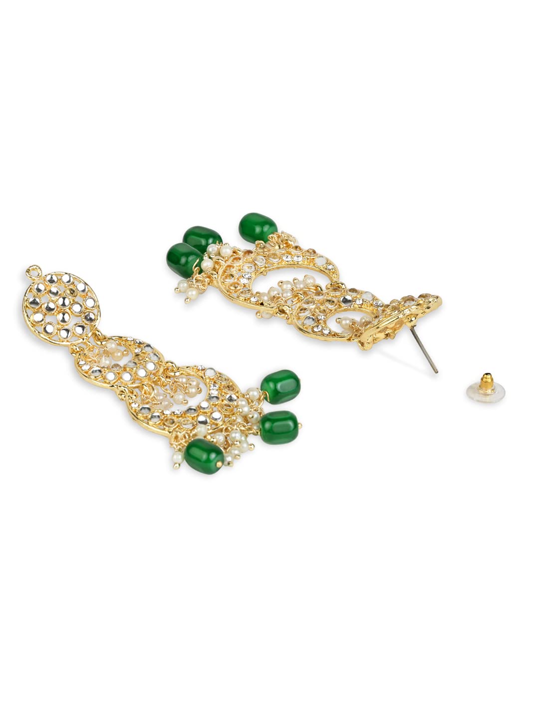 I Jewels 18K Gold Plated Traditional Kundan & Pearl Studded Dangle Earrings For Women & Girls (E3034)