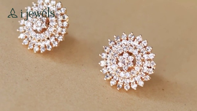 I Jewels 18k Rose Gold Plated Indian Wedding Bollywood CZ American Diamond Embellished Peacock stud Earrings for Women (E2886-90)