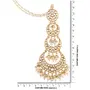 I Jewels 18k Silver Oxidised Intricately Designed Traditional Earrings with Hair Chain Encased With Kundans & Pearls (E2909)