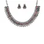 I Jewels 18K Silver Oxidised Traditional South Indian Style Coin Necklace With Earrings For Women & Girls (MC063Z)