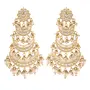 DIMENSIONS: Earring Height - 11.5 Cm X Width - 6.5 Cm This Earring set is crafted in gold plated finish with stunning antique finish - these earrings are really special .The Earrings feature Kundan-studded.Be stylish and smart with these Golden Earring. Perfectly crafted. Wear it with a suit or a saree and lehenga for an ethnic yet classy look. This earring set is a great option and a perfect pick for your wedding functions. Be assured to find a variety of contemporary and traditional designs in the mesmerising collection that we offer