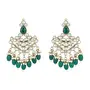 Gold plated traditional kundan studded pearl handcrafted dangle chandbali earrings are a type of ethnic jewelry that is intricately designed and crafted to be worn on the ears. The earrings feature a gold-plated metal base that is embellished with white kundan stones and pearls. The pearls used in the earrings add a touch of elegance and sophistication to the overall design. These earrings are perfect for special occasions such as weddings festivals or formal events where they can be worn to complement traditional Indian outfits such as sarees lehengas or salwar kameez. They can also be paired with western outfits for a fusion look. To maintain their shine and luster it is recommended to store them in a dry and cool place when not in use and to avoid exposing them to moisture or chemicals such as perfumes or hairspray.