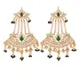 DIMENSIONS: Earring Height - 12 cm x Earring Width - 7 cm. This Earring set is crafted in gold plated finish with stunning antique finish - these earrings are really special .The Earrings feature Kundan-studded.Be stylish and smart with these Golden Earring. Perfectly crafted. Wear it with a suit or a saree and lehenga for an ethnic yet classy look. This earring set is a great option and a perfect pick for your wedding functions. Be assured to find a variety of contemporary and traditional designs in the mesmerising collection that we offer