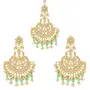 I Jewels Gold Plated Traditional Big Kundan & Pearl Chandbali Earrings with Maang Tikka Set for Women/Girls