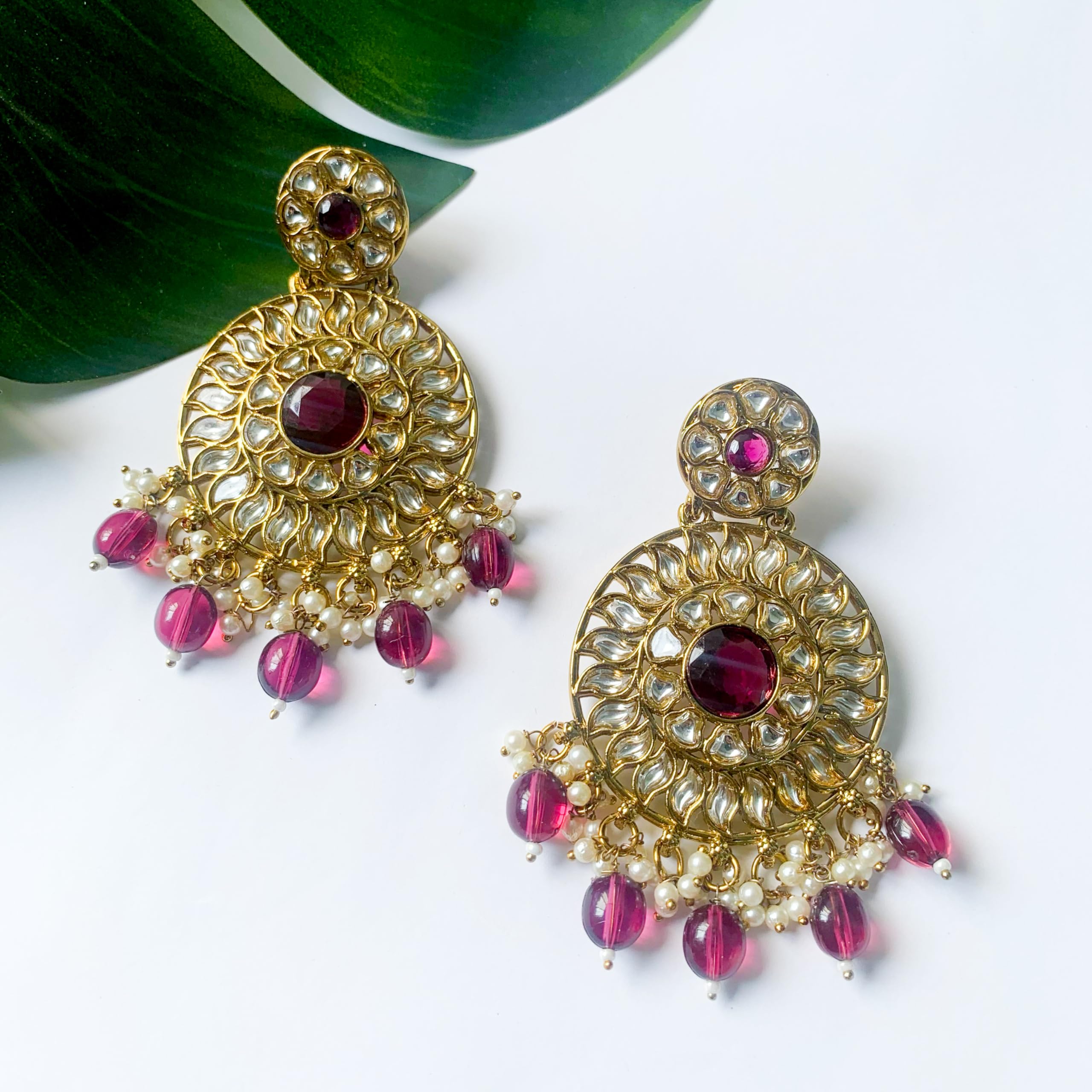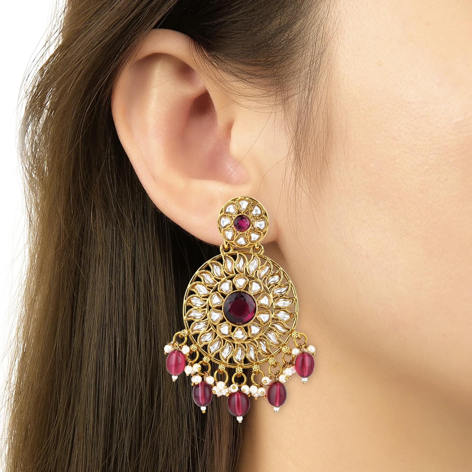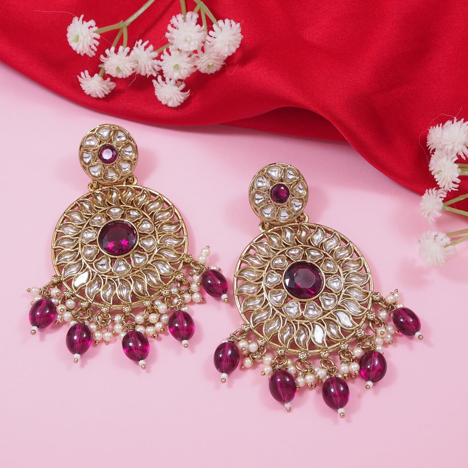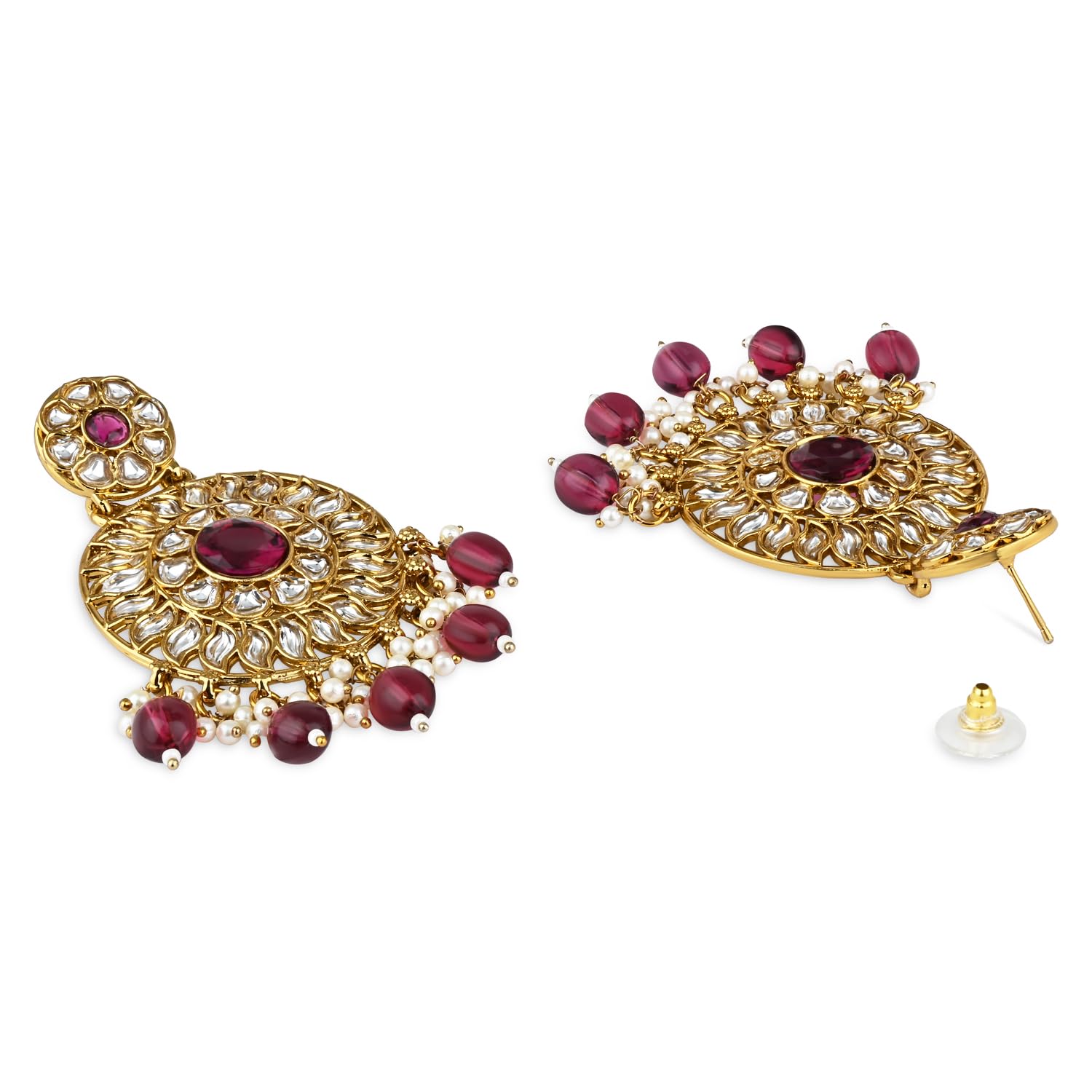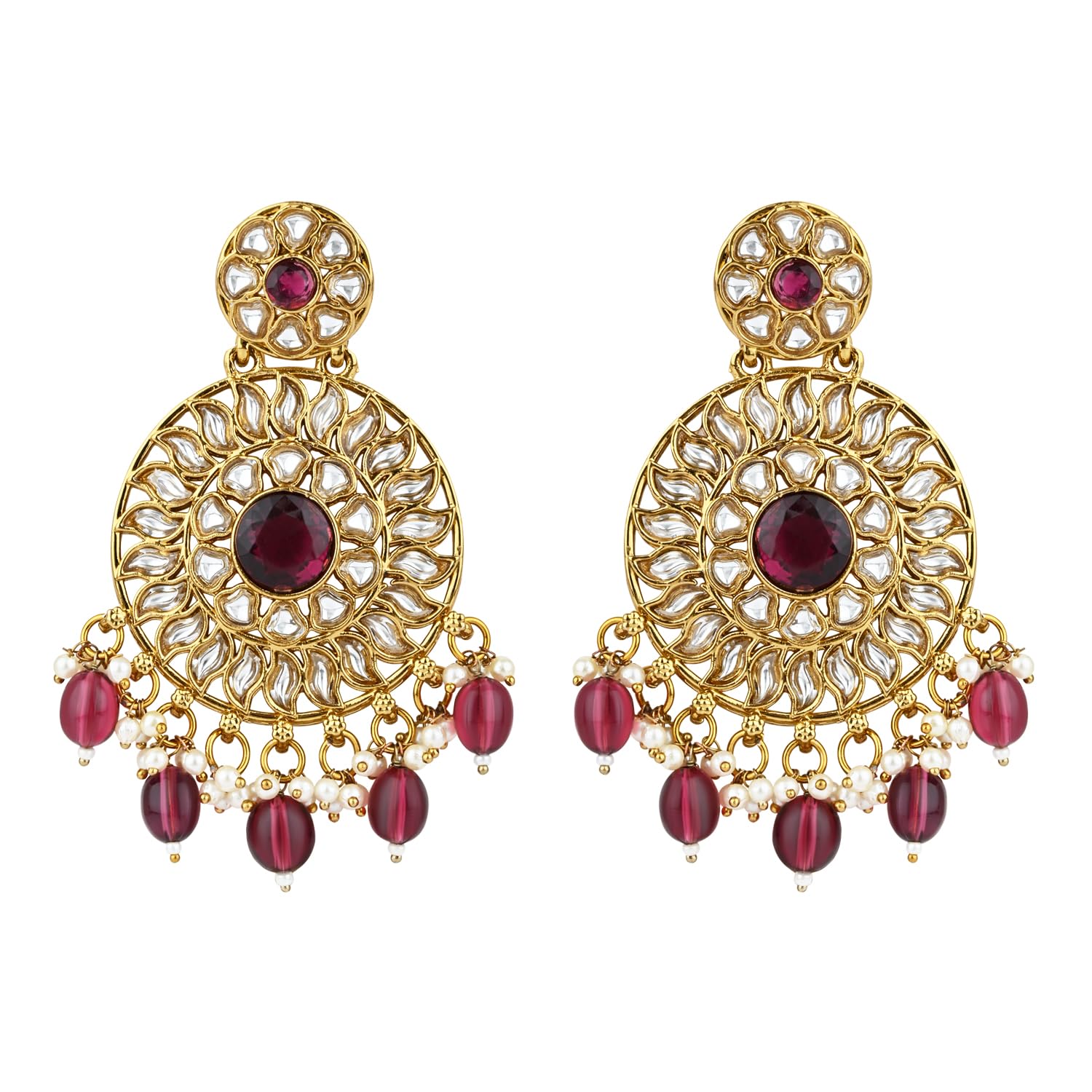 I Jewels Gold Plated Traditional Handcrafted Kundan Pearl Floral Design Earrings For Women/Girls (E3177)