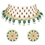 This stunning jewelry set is gold plating and includes a choker necklace and a pair of earrings. The choker necklace is adorned with intricate bead and pearl detailing adding a touch of elegance to the design. It is secured with drawstring closures allowing for a comfortable and adjustable fit. The versatile nature of this jewelry set makes it the perfect accessory to complement a variety of traditional outfits. Whether you choose to wear it with a saree or a salwar suit this necklace set will elevate your overall look and add a glamorous touch to your ensemble. The combination of beads pearls and gold plating creates a captivating visual appeal that effortlessly enhances your style.