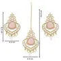 A beautiful set of jewelry that will add elegance and grace to any traditional attire.These chandbali earrings are gold plated and adorned with shimmering kundan stones that sparkle in the light. The earrings feature traditional pearl hangings that add a touch of sophistication to the design. Accompanying the earrings is a matching maang tikka which is studded with kundan stones and pearls. The maang tikka beautifully complements the earrings and adds a touch of glamour to any hairstyle.This jewelry set is perfect for weddings festivals and other traditional occasions. It also makes a great gift for any special woman or girl in your life.