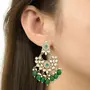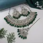 The gold-plated choker necklace set consists of a necklace a pair of earrings and a maang tikka. The necklace features kundan studded with pearl beaded in it giving it an elegant and traditional look. The stones and pearls are set in a beautiful pattern adding a touch of sophistication and grace to the necklace. The necklace is secured with drawstring closures which make it easy to adjust the size to fit comfortably around the neck. This is an important feature as it ensures that the necklace will be comfortable to wear for extended periods of time. The necklace is secured with drawstring closures which make it easy to adjust the size to fit comfortably around the neck. This is an important feature as it ensures that the necklace will be comfortable to wear for extended periods of time. The earrings and maang tikka are also adorned with stones and pearls which match the pattern of the necklace. The earrings have a beautiful design which makes them easy and comfortable to wear. The maang tikka is a traditional Indian hair accessory that can be worn with the necklace and earrings to complete the look.