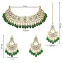 I Jewels Gold Plated Traditional Kundan Pearl Drop Bridal Choker Necklace With Chandbali Earrings & Maang Tikka Jewellery Set For Women/Girls