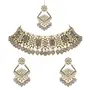 I Jewels Gold Plated Traditional Kundan Pearl Drop Choker Necklace Jewellery & Dangle Earrings Set For Women/Girls