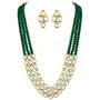 I Jewels Gold Plated Traditional Stunning White Kundan Studded Layered Pearl Necklace Jewellery Set with Earrings For Women/Girls (IJ376)