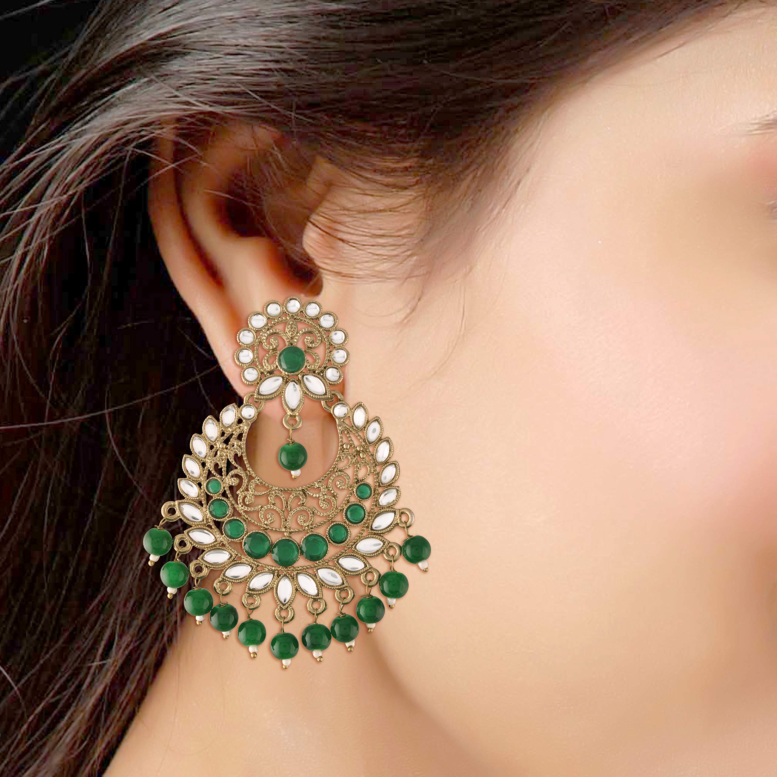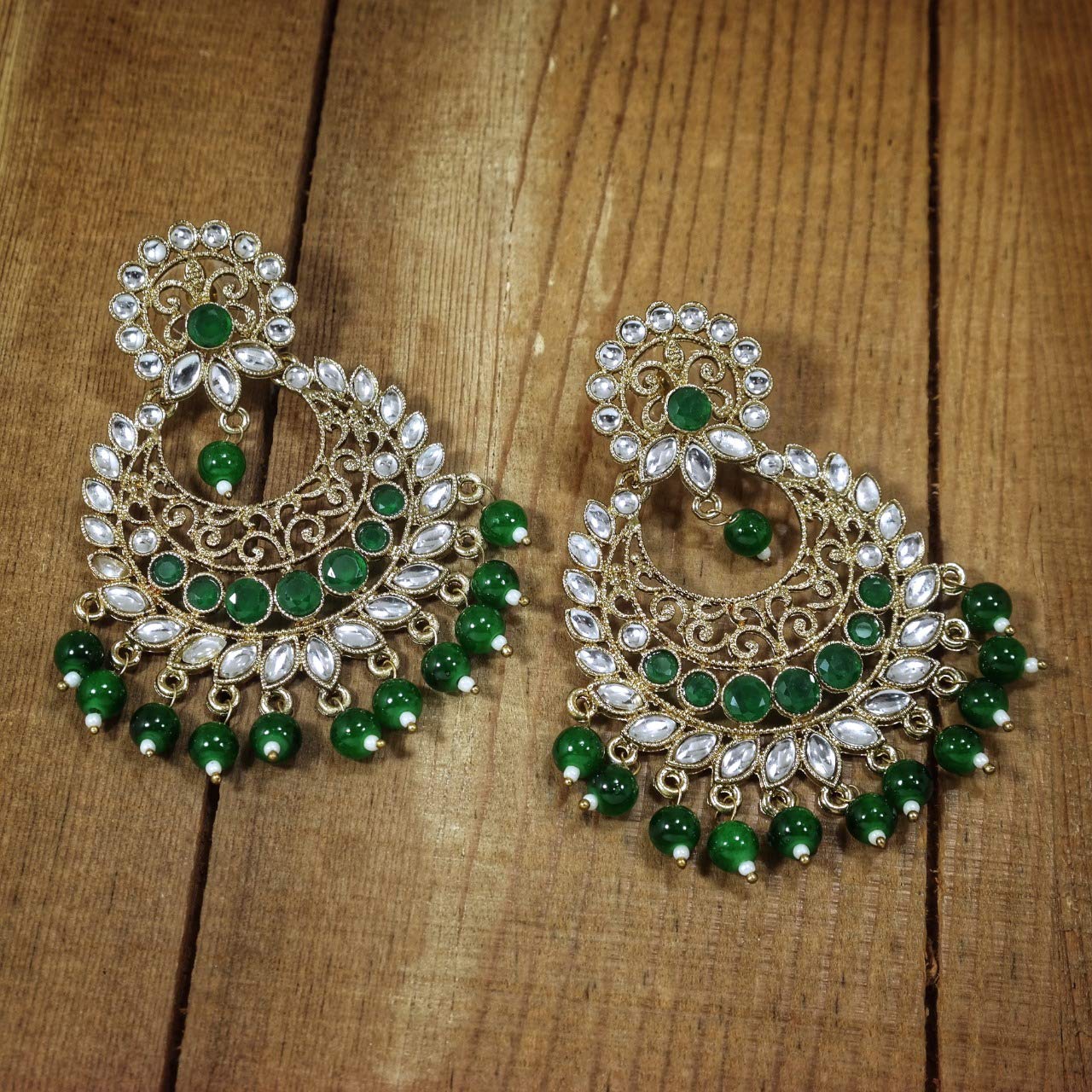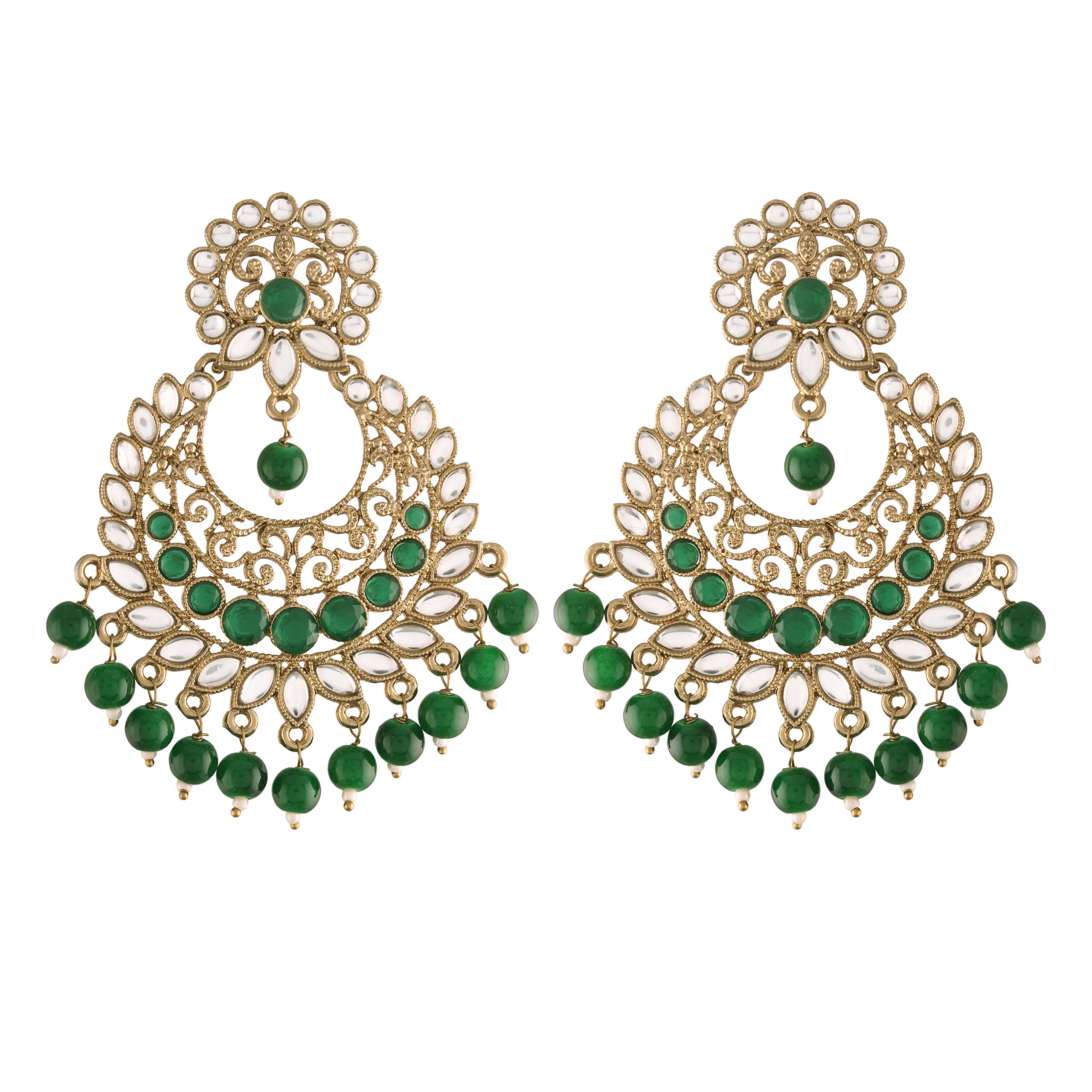This Earring set is crafted in gold plated finish with stunning antique finish - these earrings are really special .The Earrings feature Kundan-studded.Be stylish and smart with these Golden Earring. Perfectly crafted. Wear it with a suit or a saree and lehenga for an ethnic yet classy look. This earring set is a great option and a perfect pick for your wedding functions. Be assured to find a variety of contemporary and traditional designs in the mesmerising collection that we offer