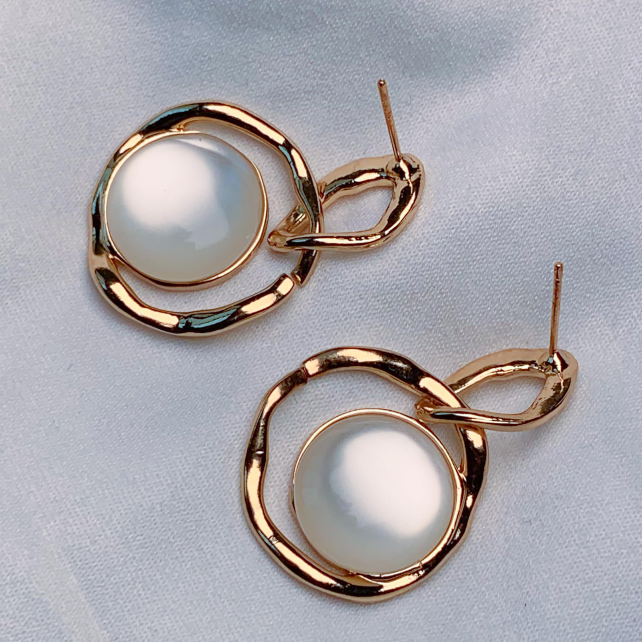 I Jewels Latest Fashion Stylish Gold Plated Lightweight Freshwater Pearl Drop Dangle Chunky Studs Earrings For Women
