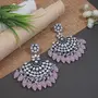 I Jewels Navratri Ethnic Stylish Silver Oxidised Kundan Pearl Chandbali Earrings For Women And Girls (E3106Z)