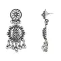I Jewels Navratri Silver Oxidised Afghani Style Radhe Krishna Flute Figurative Designer Earrings For Women (E3230OX)