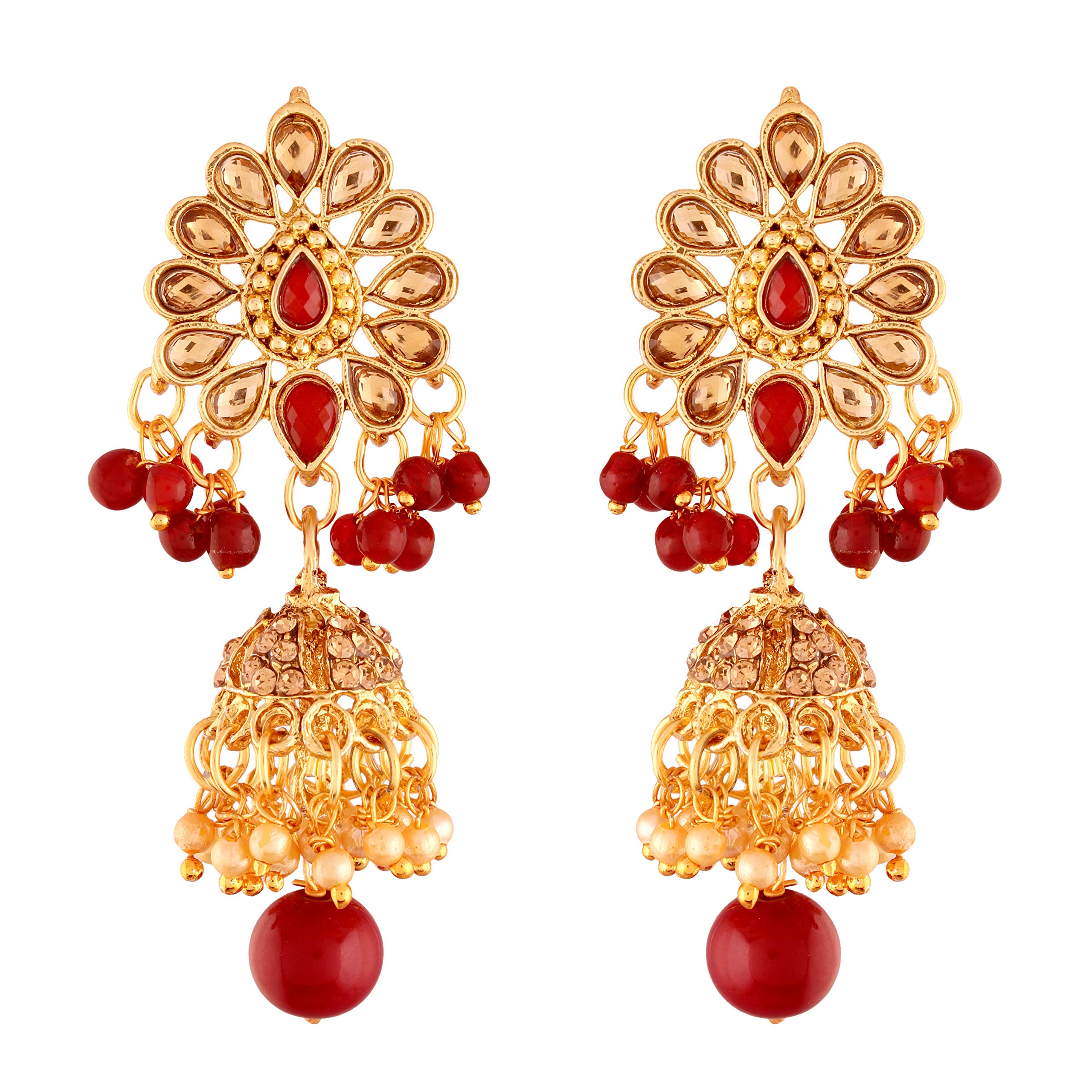 I Jewels Traditional Gold Plated Kundan & Pearl Jhumki Earrings for Women (E2748M)