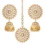 I Jewels Traditional Gold Plated With Stunning Antique Finish Kundan & Pearl Jhumka Earrings With Maang Tikka for Women/Girls