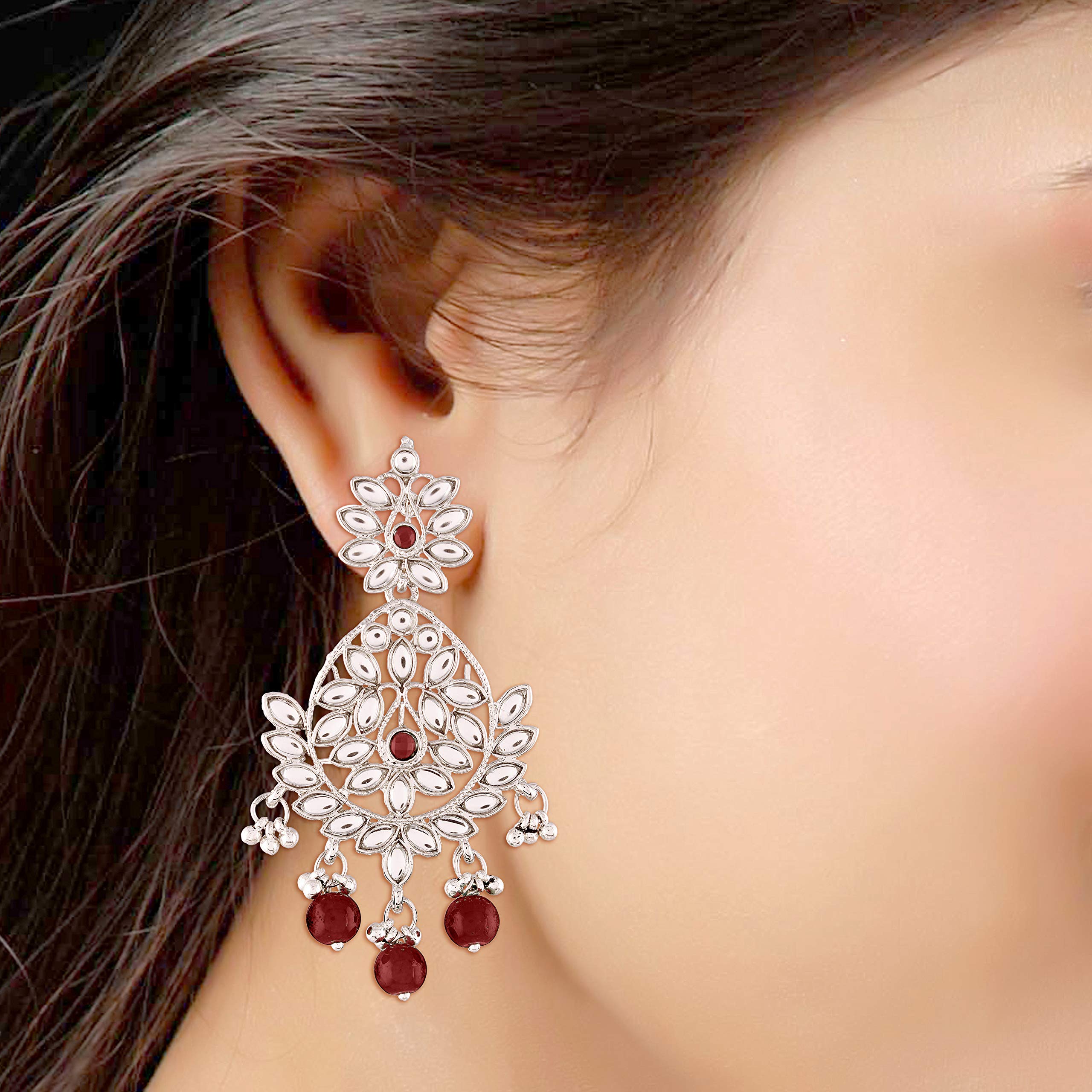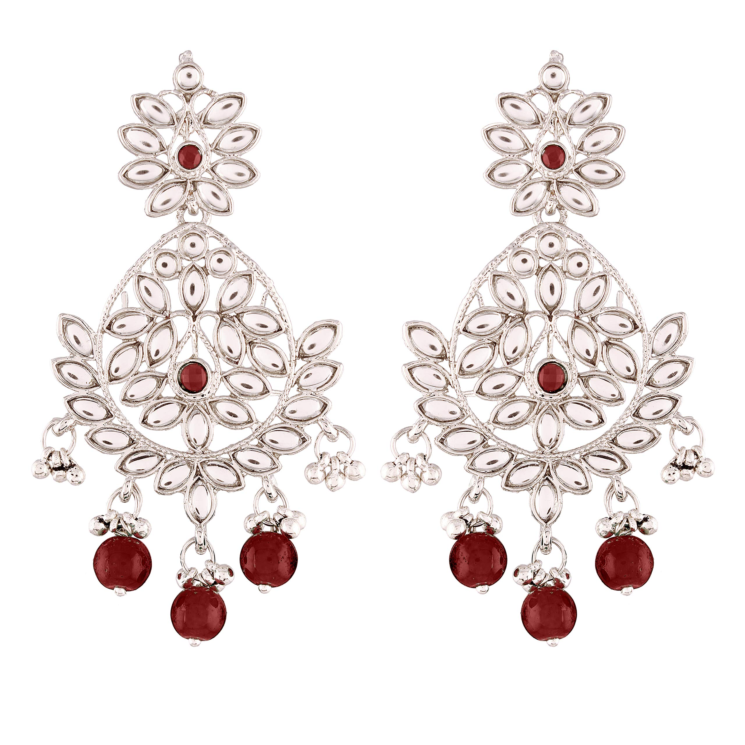 I Jewels Traditional Silver Plated Chandbali Earrings Encased With Faux Kundans For Women/Girls (E2465)