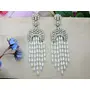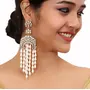Experience timeless elegance with these stunning Kundan pearl waterfall earrings, meticulously crafted to elevate your bridal and festive ensembles. These exquisite statement pieces feature a graceful cascading design adorned with premium Kundan stonework and pristine pearl tassels that capture light with every movement.Each earring showcases: Intricate gold-toned framework with traditional Indian artistry Brilliant Kundan-style crystal embellishments arranged in classical patterns Five flowing strands of lustrous teardrop-shaped pearl beads Three-tiered design with sophisticated architectural elements Lightweight construction ensuring comfortable wear despite their statement sizePerfect for brides and wedding guests alike, these versatile earrings complement a wide range of traditional attire: Bridal lehengas and sarees in any color palette Anarkali suits and heavy embroidered ensembles Silk sarees and banarasi weaves Contemporary fusion wear for cocktail ceremoniesIdeal for multiple occasions including weddings, engagement ceremonies, Diwali celebrations, Karwa Chauth, sangeet nights, and reception parties. These timeless earrings beautifully bridge cultural traditions with contemporary style, making them suitable for both Indian celebrations and international formal events.The classic combination of white pearls with gold-toned metal creates a versatile accessory that coordinates seamlessly with outfits in any color, from traditional reds and maroons to modern pastels and metallics.Add these handcrafted statement earrings to your jewelry collection today and experience the perfect blend of royal elegance and sophisticated charm that will make you the center of attention at every special occasion!The classic white and silver palette ensures these earrings complement virtually any color palette, making them an essential addition to your jewelry collection. Their versatility allows for styling with both traditional Indian attire and contemporary Western formal wear.Embrace heritage-inspired luxury with these stunning tassel earrings that capture the essence of royal elegance while offering modern wearability. Order today to elevate your special occasion style with these heirloom-quality statement pieces!