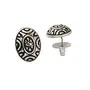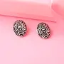 Non-Precious Metal Oxidized Silver Tone Plated Black Enamel Ovel Shaped Stud Earrings for women (Gold) (ER389/709)